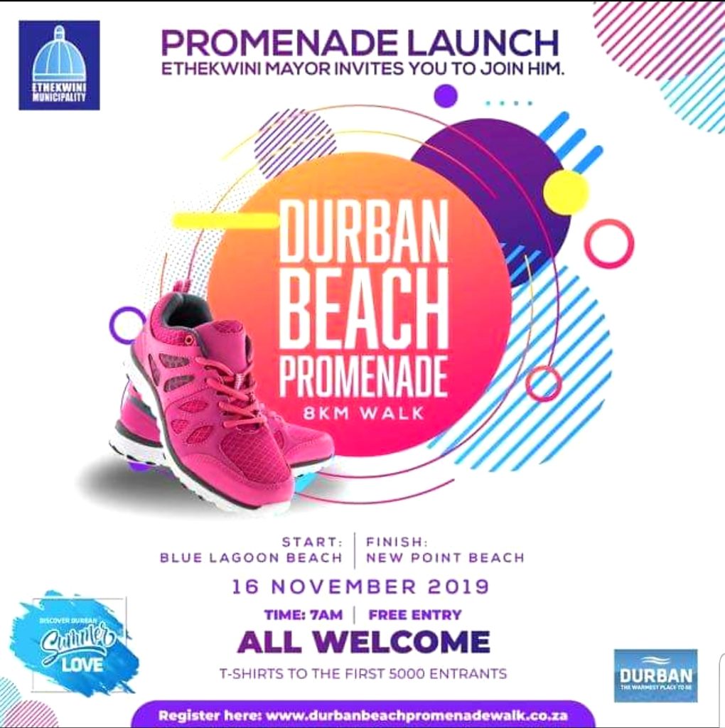 The eThekwini Municipality Mayor invites you to join him. For the Durban Beach Promenade Launch – with an 8km walk. Saturday the 16th of November. START: Blue Lagoon Beach END:…